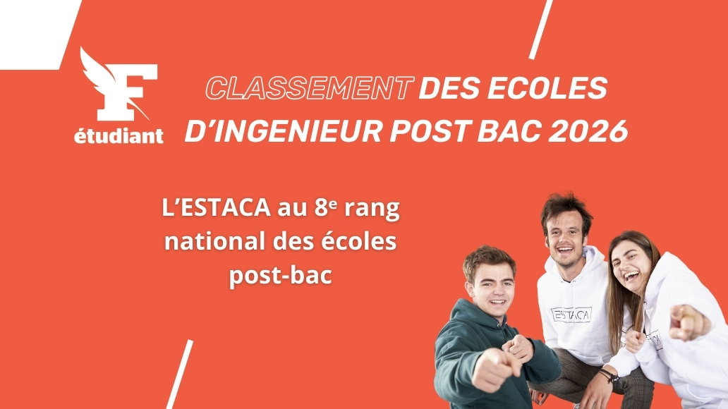 Le Figaro a publié son classement 2026 des écoles d’ingénieurs post-bac. Avec une note générale de 16,2/20, l’ESTACA se positionne au 8ᵉ rang national des écoles post-bac, confirmant la solidité de son modèle et la qualité reconnue de sa formation.