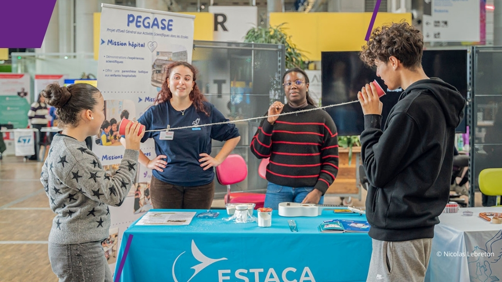 Dans le cadre d’un partenariat avec la Cité des sciences et de l’industrie, des étudiant.e.s de l’ association PÉGASE (Projet d’Eveil Général aux Activités Scientifiques à l’Ecole) ont animé des ateliers les 7 et 8 février à la Cité des Sciences. Tout au long du week-end, les visiteurs étaient invités à venir à la rencontre de femmes ingénieures et à découvrir les objets ou projets sur lesquels elles travaillent. L’objectif était de montrer au public la variété des sciences de l’ingénieur et l’intérêt de ces larges domaines d’activités pour les femmes. Les étudiant.e.s de l’ESTACA ont proposé des expériences ludiques pour permettre aux enfants de se familiariser avec des expériences scientifiques. L’objectif était aussi, à travers leurs parcours d’élèves ingénieures, de montrer l’exemple, de créer des échanges avec le public pour susciter des vocations.